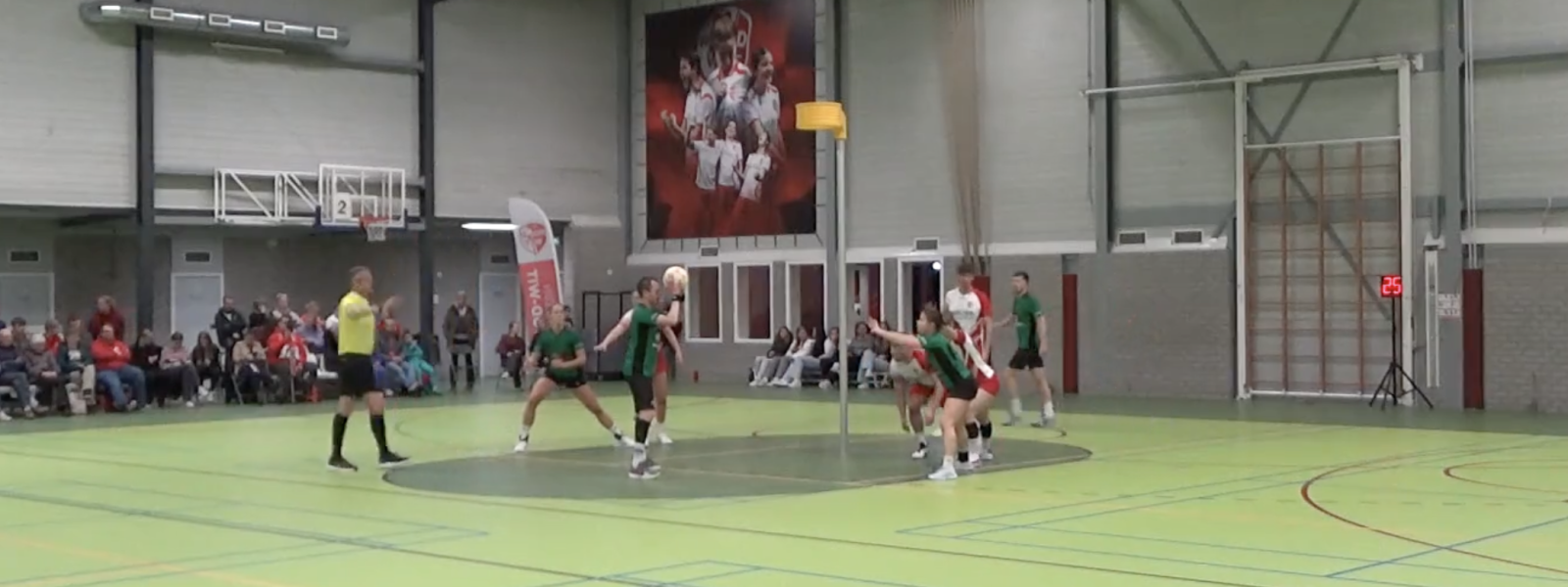 Afgelopen zaterdag reisden de Drachtster korfballers naar Rood-Wit in Wezep. De Erica Terpstra Sporthal was het decor voor de eerste return in de eerste klasse B van dit zaalseizoen. Drachten is inmiddels vol in de achtervolging op concurrent OKO en een overwinning is het enige wat telt. Voor Rood-Wit geldt eigenlijk hetzelfde. Ze staan onder in de rangschikking en elk punt wat ze kunnen bijschrijven is welkom. Het werd een bij vlagen zeer interessant duel met uiteindelijk een verdiende winnaar.